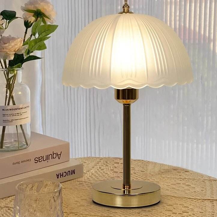 โคมไฟตั้งโต๊ะคริสตัลทรงกลีบดอกไม้ สไตล์นอร์ดิกโมเดิร์น มินิมอล ดีไซน์ยุโรป พร้อม 3 ระดับอุณหภูมิแสง สำหรับห้องนอน ข้างเตียง หรืองานแต่งงาน