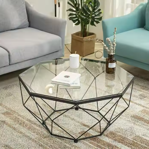 โต๊ะกาแฟทรงกลมสไตล์นอร์ดิกทันสมัยพร้อมกระจกนิรภัยและไฟเฟอร์นิเจอร์ห้องนั่งเล่นทำจากสแตนเลสสุดหรู