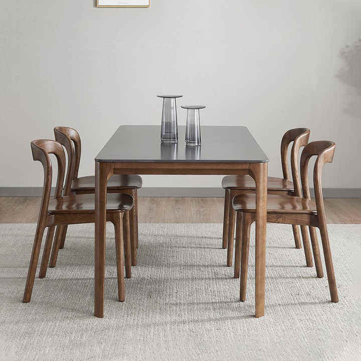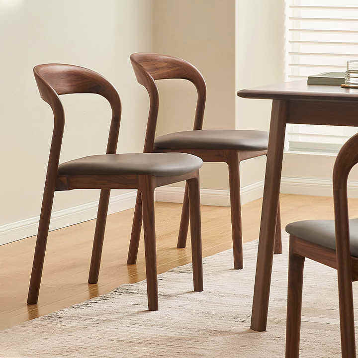 เก้าอี้รับประทานอาหารไม้เนื้อแข็งสไตล์นอร์ดิกเก้าอี้รับประทานอาหารหนัง PU พนักพิงหลังน้ำหนักเบาหรูหราบ้านเฟอร์นิเจอร์สำหรับการศึกษาที่สะดวกสบายแบบพกพา