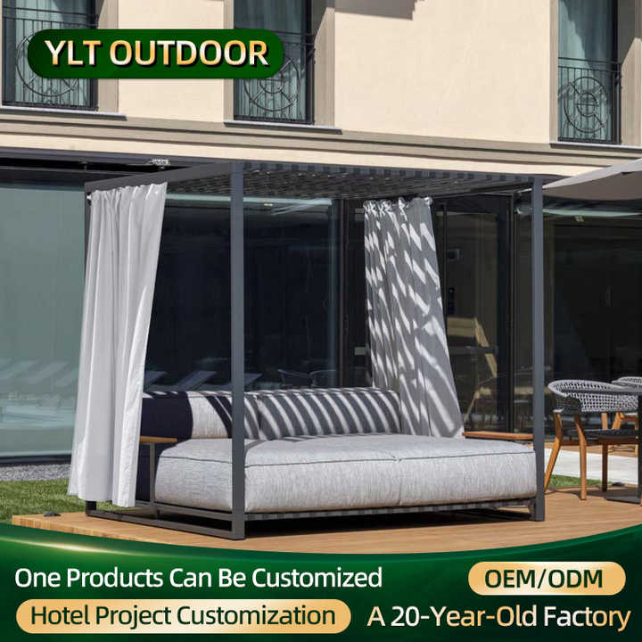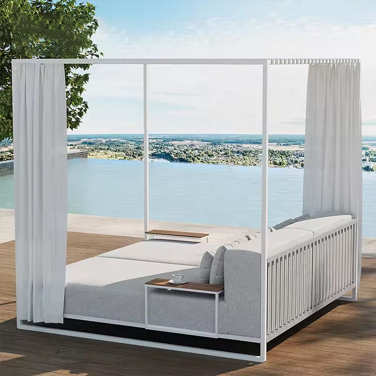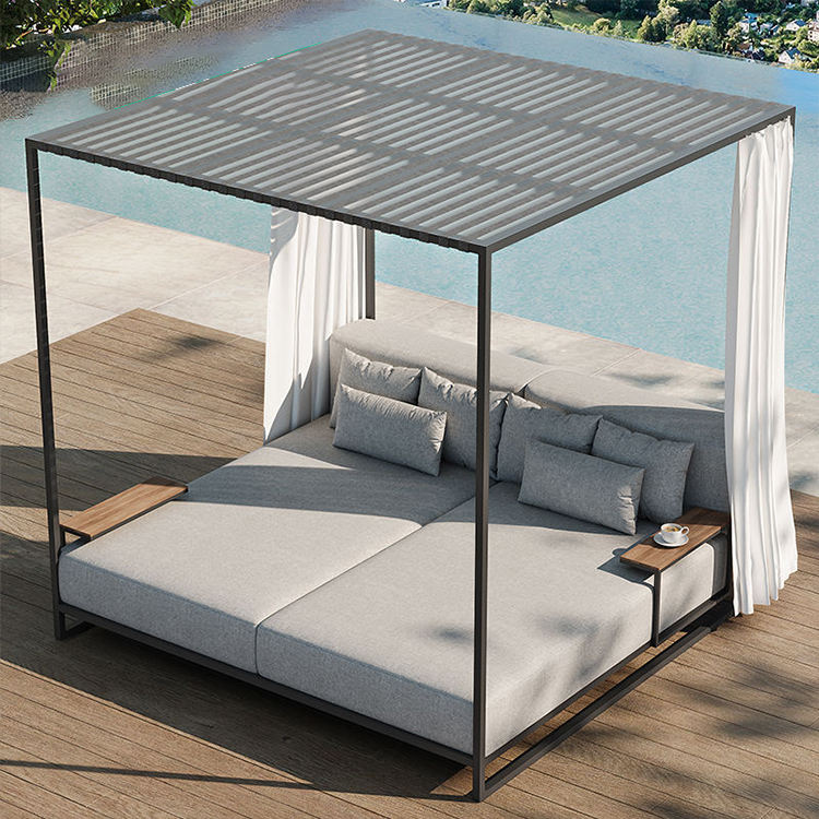 นอร์ดิกเฟอร์นิเจอร์เตียงกลางวันกลางแจ้งโรงแรมสวนสระว่ายน้ำที่นอนอลูมิเนียมโครงหลังคาเตียงอาบแดดรีสอร์ทพักผ่อนกลางแจ้ง