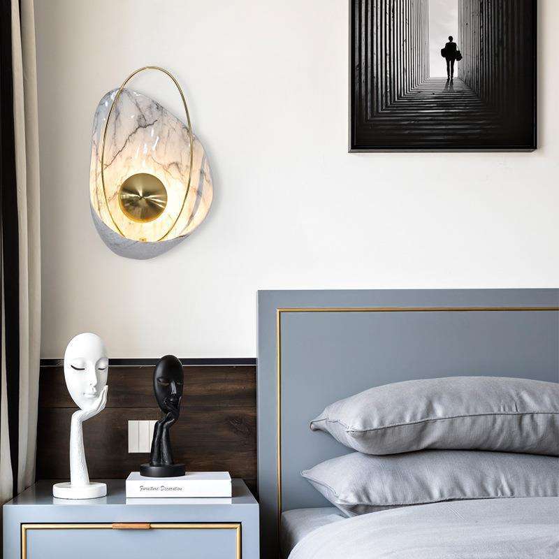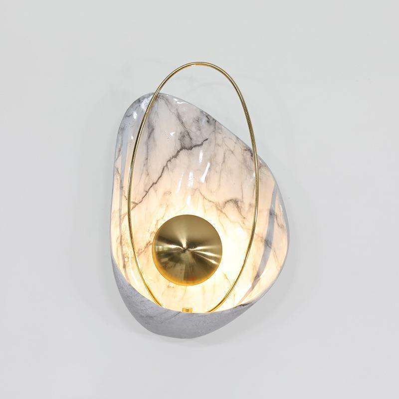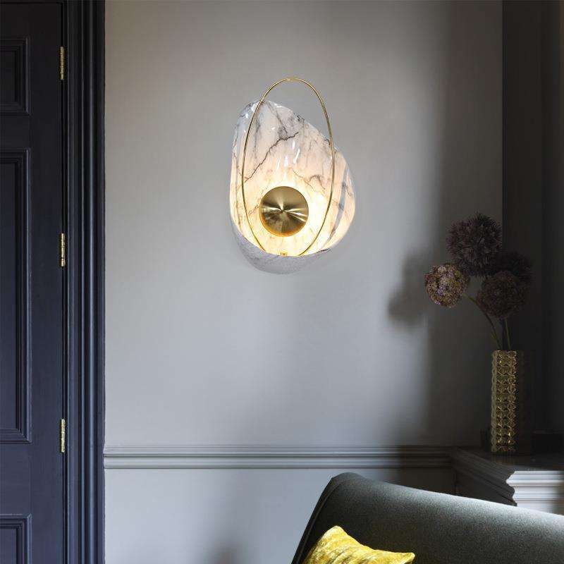 โคมไฟติดผนังดีไซน์เนอร์สไตล์นอร์ดิกโพสต์โมเดิร์น หรูหราด้วยลายหินอ่อนเทียมและเปลือกหอย ตัวโคมทำจากเหล็ก ดีไซน์สร้างสรรค์ เหมาะสำหรับห้องนั่งเล่นและโชว์รูม