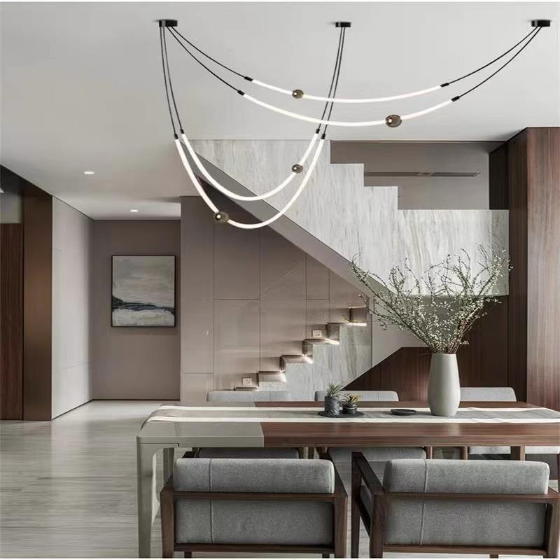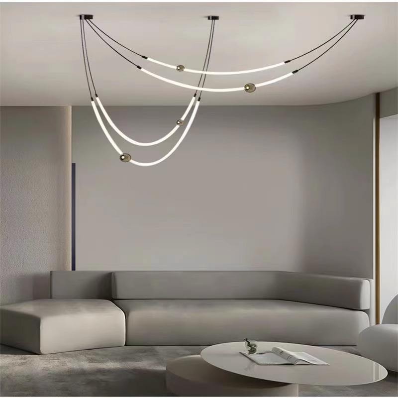โคมไฟเพดานทรงเส้นตรงสไตล์นอร์ดิก โพสต์โมเดิร์น ดีไซน์สร้างสรรค์ เรียบง่าย ศิลปะ สำหรับร้านอาหาร บาร์ เคาน์เตอร์ แสงหรูหรา โคมไฟระย้าทรงยาว