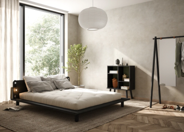 ชุดเตียงขนาดคิงไซส์และควีนไซส์ ดีไซน์สแกนดิเนเวียนแบบนอร์ดิก หัวเตียงหนังแท้ โครงไม้จริง