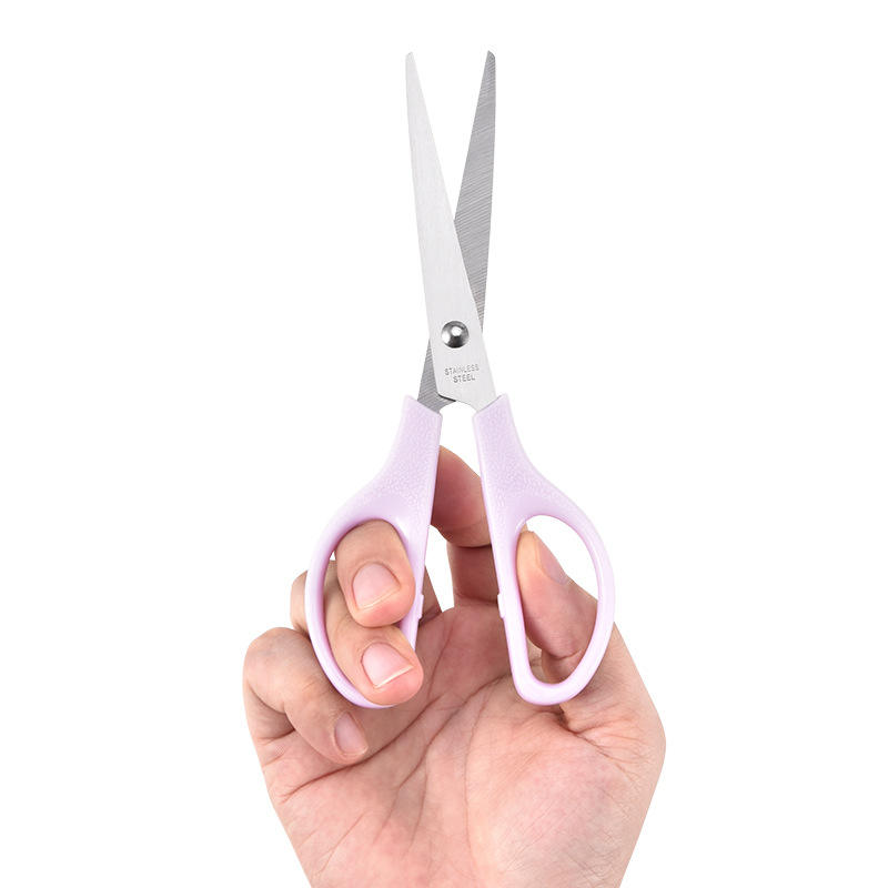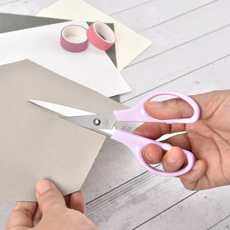 กรรไกรขนาดเล็กสไตล์นอร์ดิกสีชมพูและสีม่วง 16.8 ซม. สแตนเลสสตีลสำหรับตัดกระดาษงานฝีมือสำหรับเด็กอายุ 7-12 ปี
