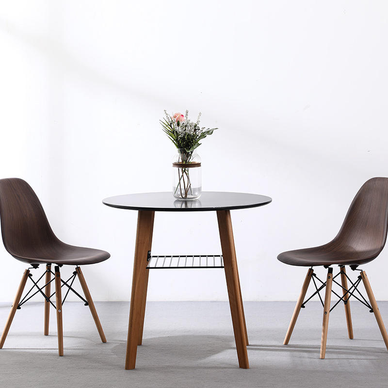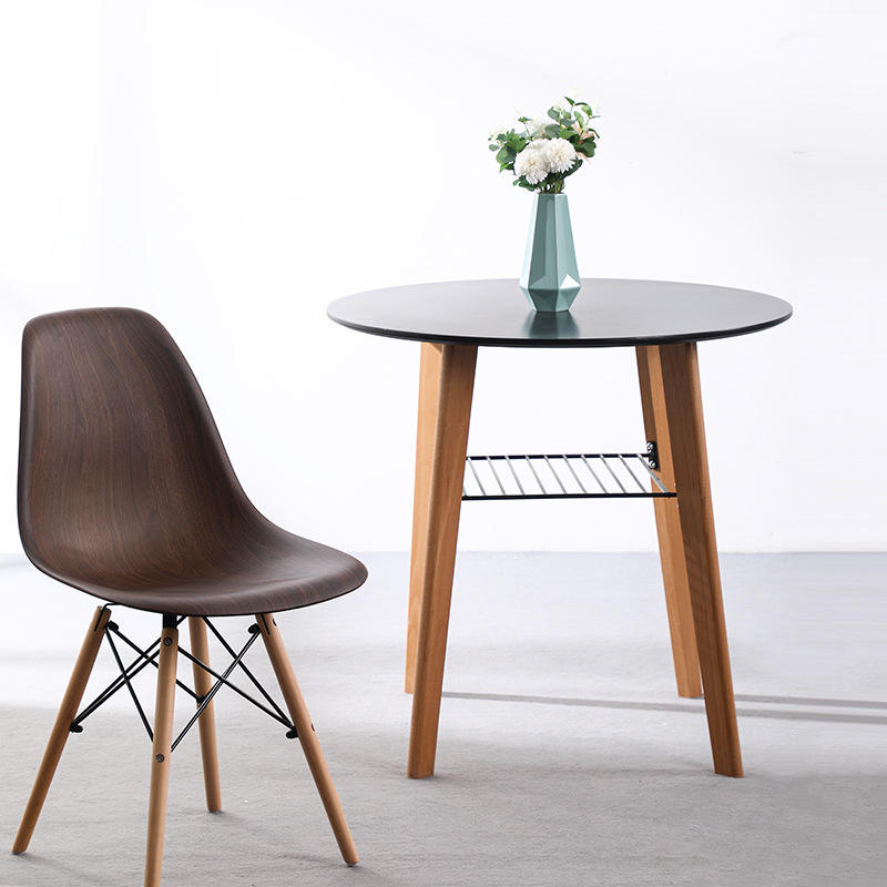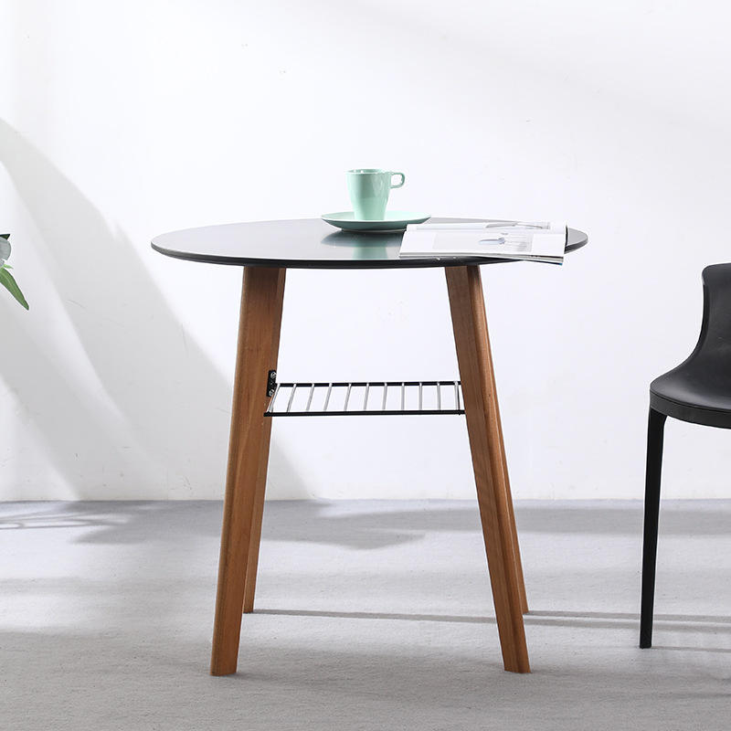 โต๊ะอาหารไม้เนื้อแข็งทรงกลมสไตล์นอร์ดิก สีดำและสีขาว ดีไซน์แข็งแรง เหมาะสำหรับห้องรับประทานอาหาร