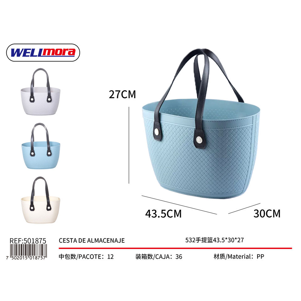 ตะกร้าใส่ของเวลิโมรา 43.5x30x27 ซม. ตะกร้าเก็บของ PP สำหรับจัดระเบียบผลไม้ในห้องน้ำ