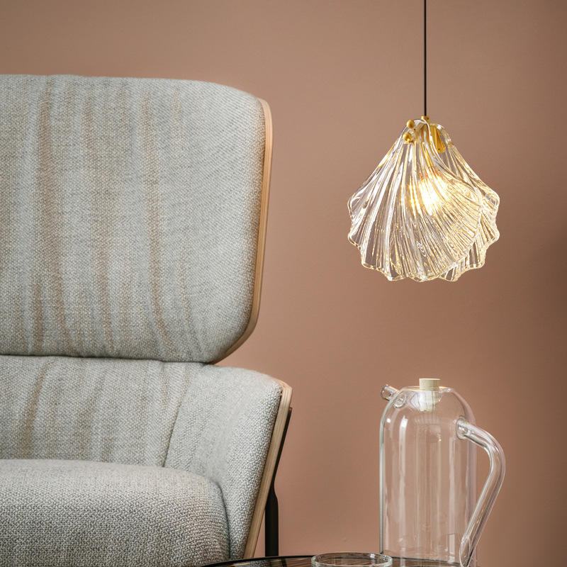 โคมไฟห้อยเพดานสไตล์นอร์ดิก ทองแดงแท้ ดีไซน์หรูหรา หัวเดียว โพสต์โมเดิร์น กระจกทรงเปลือกหอย สำหรับห้องนอน ห้องรับประทานอาหาร เคาน์เตอร์บาร์-โมเดิร์น