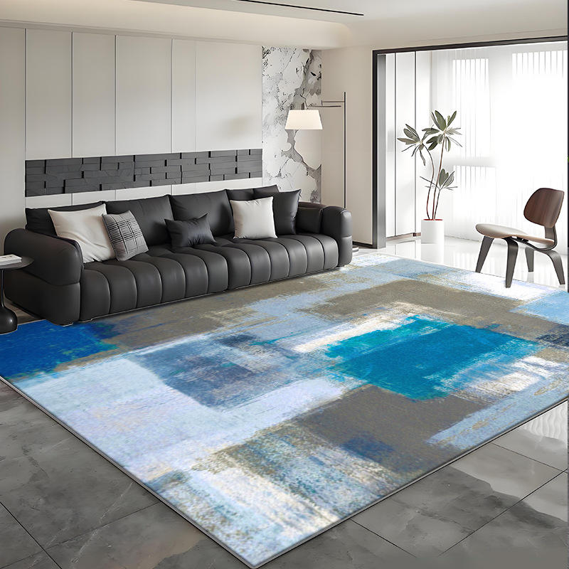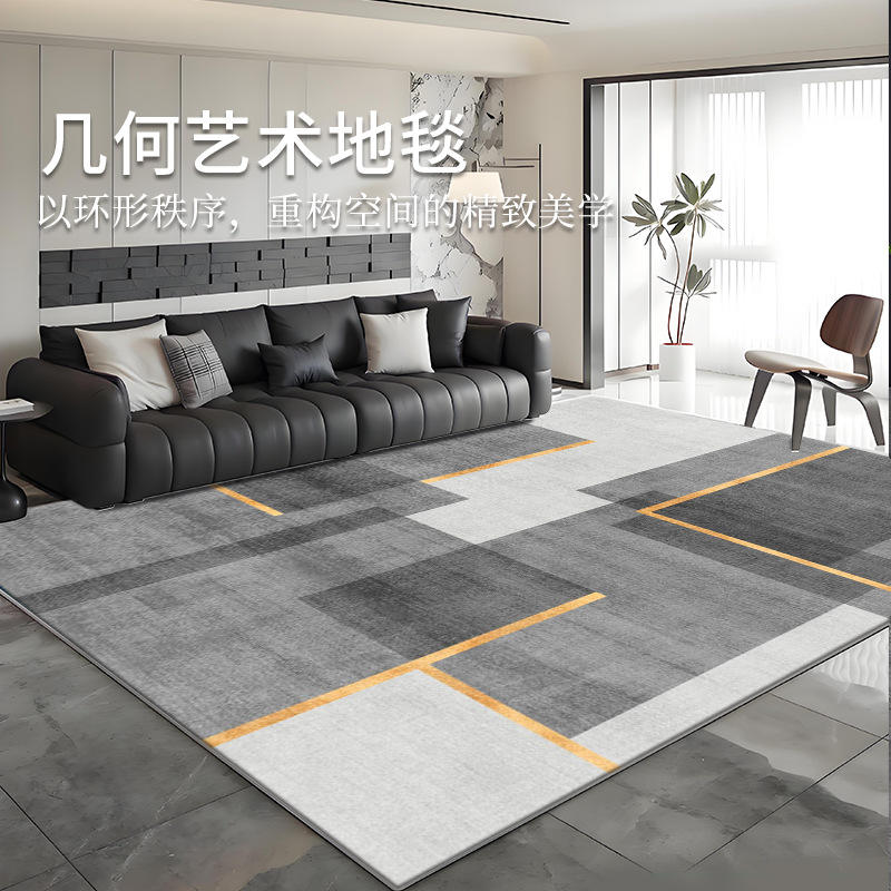 พรมกำมะหยี่คริสตัลสไตล์นอร์ดิก รูปทรงสี่เหลี่ยมผืนผ้า ลายเส้นเรขาคณิตแบบนามธรรม ป้องกันคราบสกปรก เหมาะสำหรับห้องนั่งเล่น ห้องทำงาน ทางเข้าบ้าน