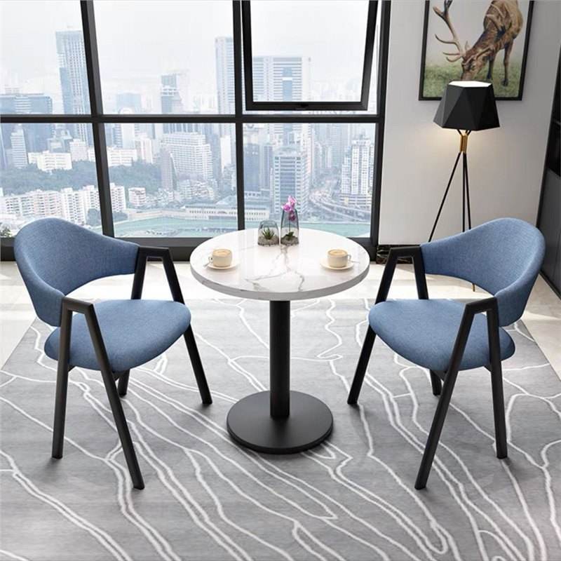 ชุดโต๊ะอาหารและเก้าอี้สไตล์นอร์ดิก 3 ชิ้น โต๊ะทรงกลมหน้าหินอ่อน ชุดโต๊ะอาหารทันสมัยสำหรับพื้นที่ขนาดเล็ก ใช้สำหรับสำนักงานหรือห้องประชุม