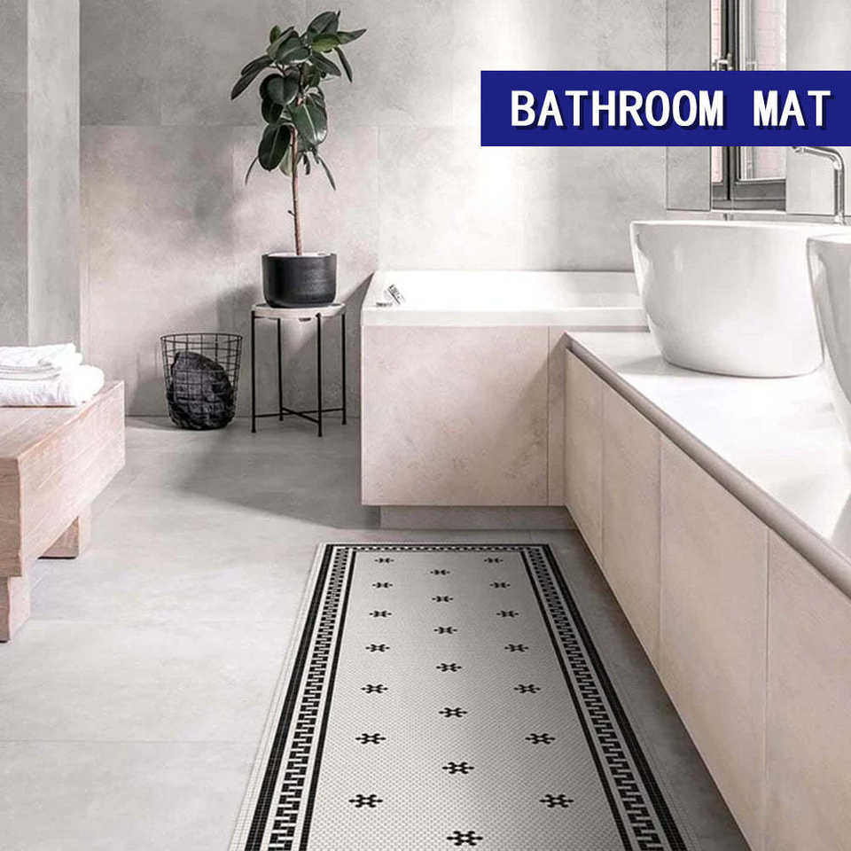 พรมเช็ดเท้าสไตล์นอร์ดิก รูปทรงสี่เหลี่ยมผืนผ้า สีขาว ลายเรขาคณิต ทำจากวัสดุ EVA กันน้ำ ใช้ได้ในห้องครัว ห้องนอน ห้องทำงาน หรือทางเข้าบ้าน