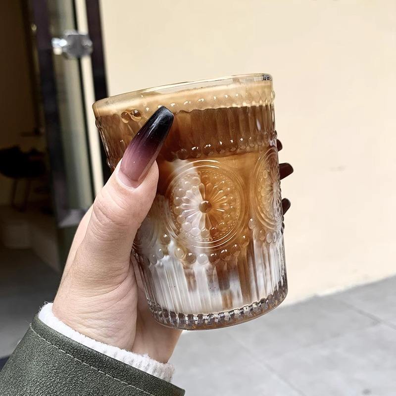 แก้วกาแฟลายนูนสไตล์นอร์ดิก ลายดอกทานตะวัน สำหรับชา นม เครื่องดื่มเย็น ใช้ในงานปาร์ตี้ แก้วเดี่ยว