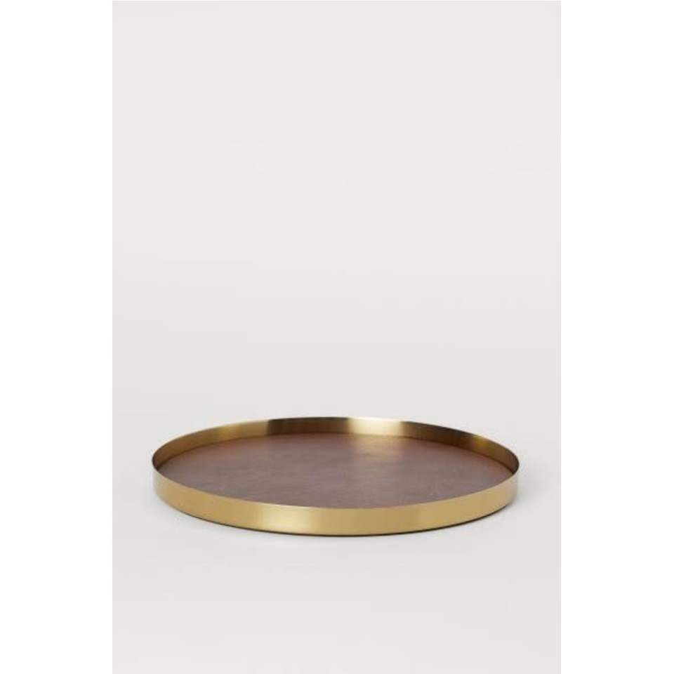 ถาดโลหะเคลือบสไตล์นอร์ดิก ขอบสีทองเรียบง่าย จานโชว์เครื่องประดับทรงกลม และที่จัดเก็บเครื่องสำอางสำหรับโต๊ะเครื่องแป้ง ขายส่ง