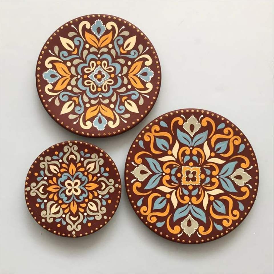 จานแขวนผนังเคลือบสไตล์นอร์ดิก ลายแมนดาลา ชุดจานโลหะเคลือบสำหรับตกแต่งบ้านและงานตกแต่งภายใน
