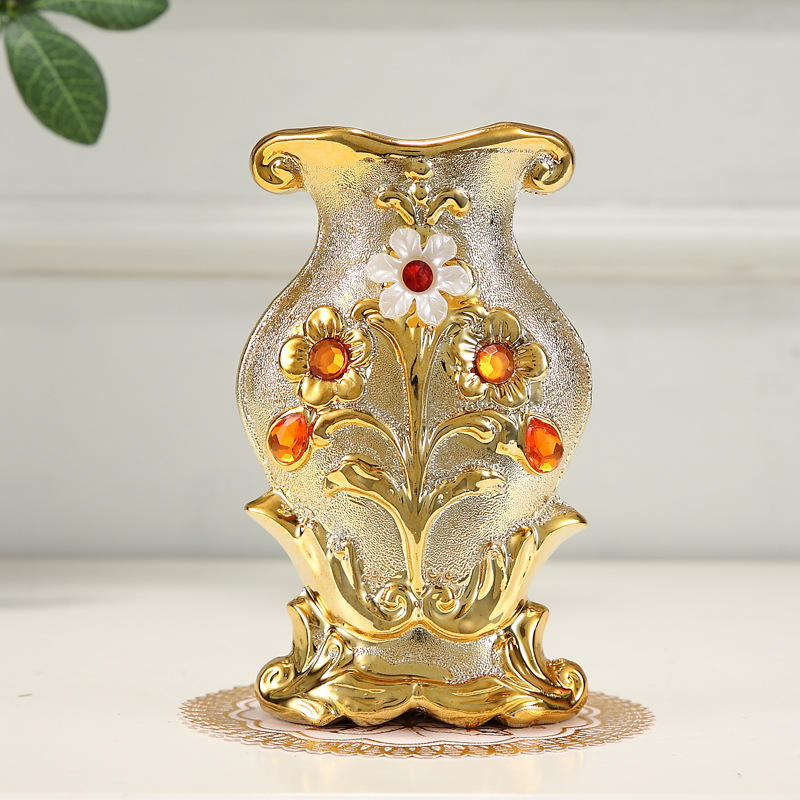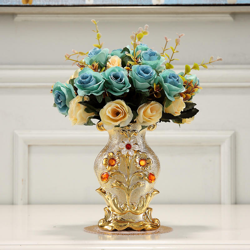 แจกันเซรามิกสีทองสไตล์นอร์ดิกสำหรับตกแต่งห้องนั่งเล่น แจกันตั้งโต๊ะสำหรับจัดดอกไม้ประดิษฐ์กุหลาบ