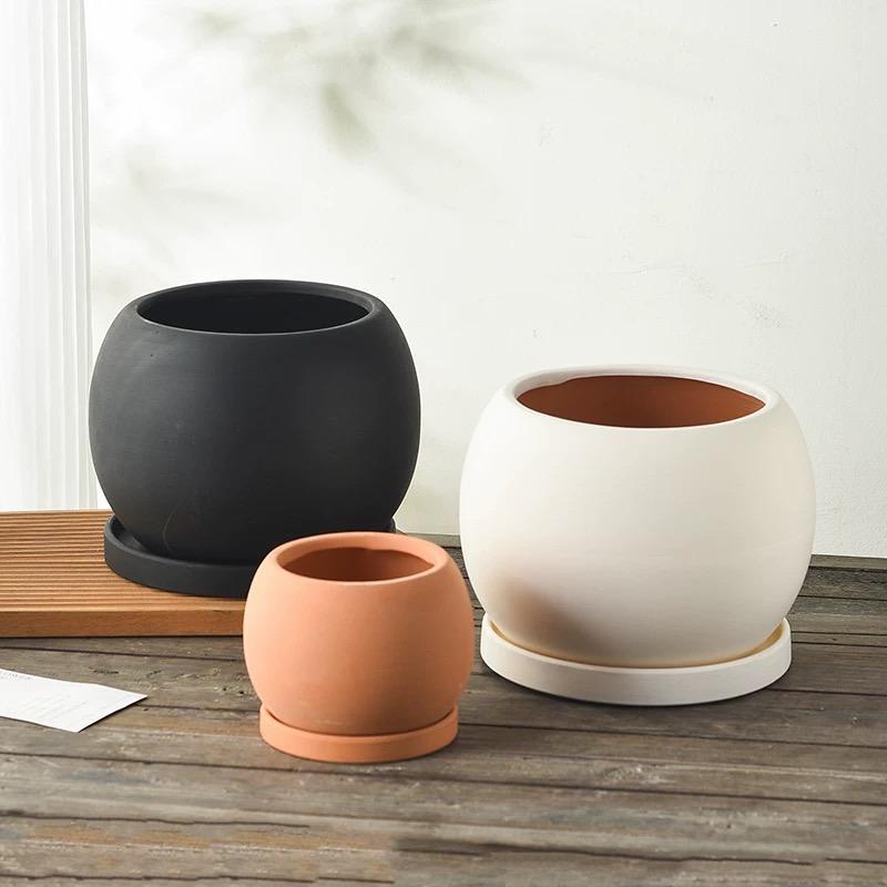 ชื่อสินค้า:กระถางต้นไม้ดินเผา ตกแต่งสวน ทรงกลม สีขาวดำ เซรามิก, กระถางดอกไม้ตกแต่งบ้านสั่งทำพิเศษ กระถางปลูกไม้อวบน้ำแฮนด์เมดราคาถูก