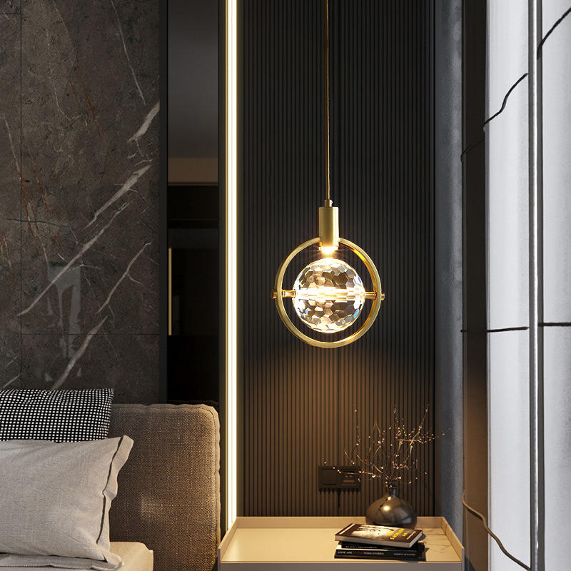 โคมไฟระย้าสไตล์นอร์ดิกหรูหรา ทำจากทองแดงทั้งชิ้น รูปทรงลูกฟุตบอลคริสตัล สำหรับห้องนอน ทางเข้าบ้าน และพื้นที่อยู่อาศัยสุดหรู