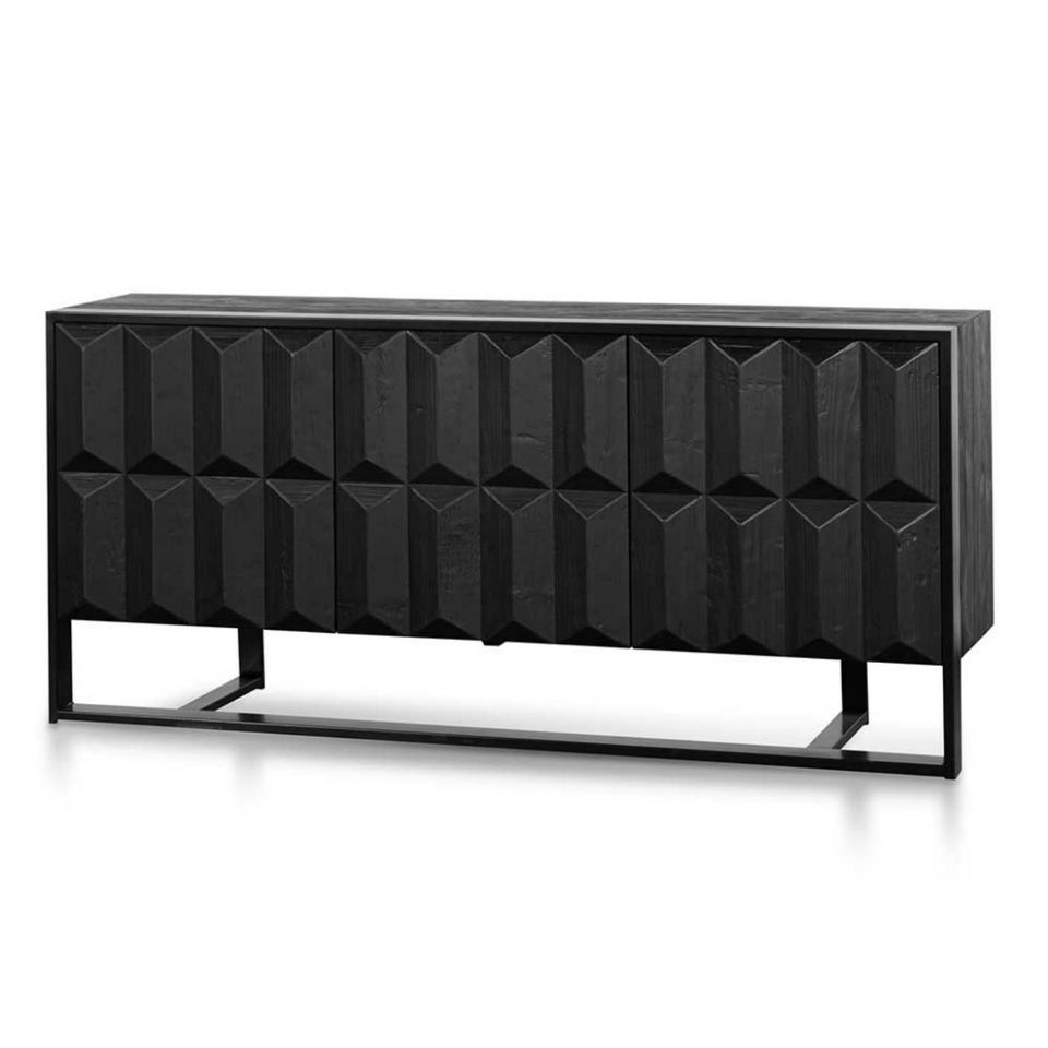 ตู้ไซด์บอร์ดสไตล์นอร์ดิกโมเดิร์น 3 ประตู ฐานเหล็กดัด ไม้แกะสลักสีดำ รีไซเคิล