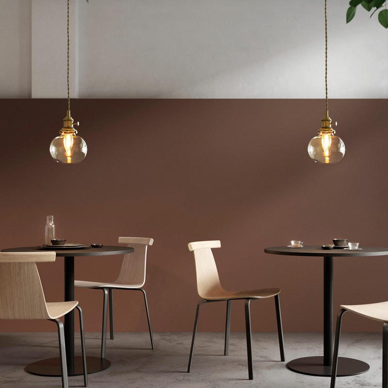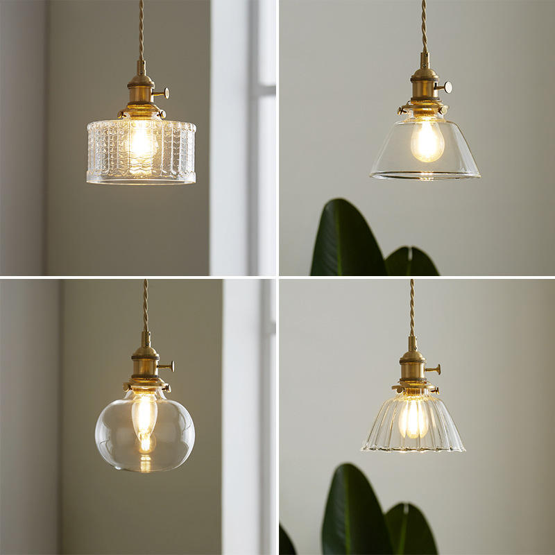 โคมไฟระย้าสไตล์นอร์ดิก โมเดิร์น มินิมอล แบบญี่ปุ่นย้อนยุค ทำจากทองเหลืองและแก้ว สำหรับห้องอาหาร โต๊ะบาร์ โคมไฟห้อยเพดาน