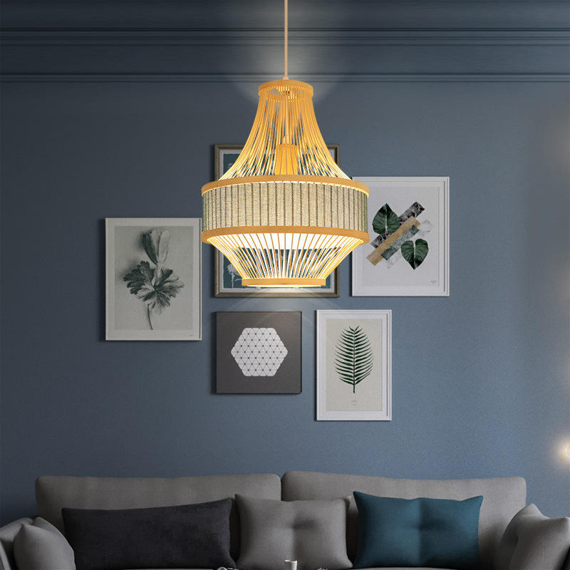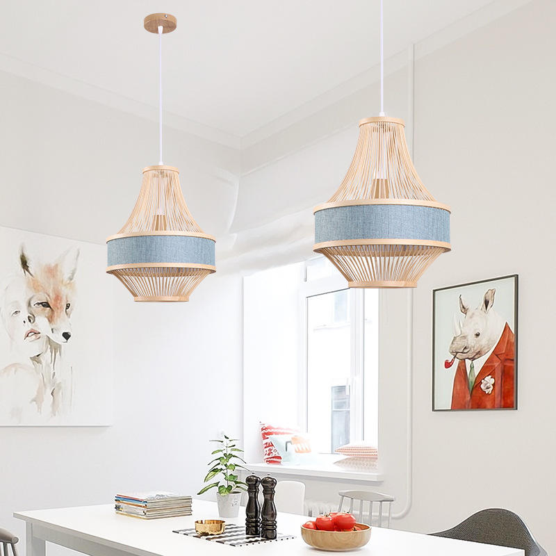 โคมไฟแขวนสไตล์นอร์ดิกทรงกลมหลอดไฟ E27 โคมไฟศิลปะไม้ไผ่สำหรับห้องนอนห้องรับประทานอาหาร