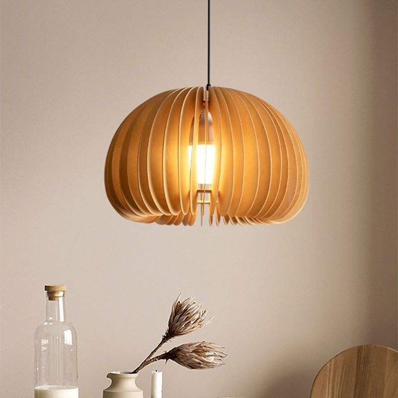 โคมไฟฟักทองไม้สไตล์นอร์ดิกย้อนยุค ดีไซน์สร้างสรรค์ สไตล์วบิซาบิ โคมไฟห้อยแบบญี่ปุ่น สำหรับร้านอาหาร ห้องนอน และโฮมสเตย์