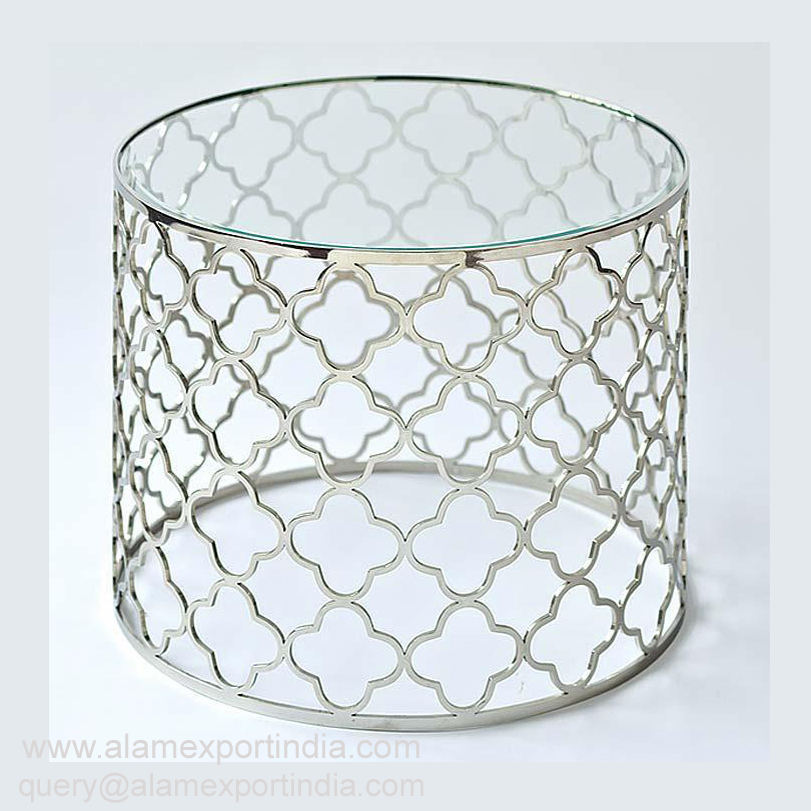โต๊ะด้านข้างเข้ามุมโลหะทรงกลมสไตล์นอร์ดิกสำหรับห้องนั่งเล่นทำด้วยมือสำหรับห้องนอนด้านข้างโซฟาทรงกลมสีเงิน