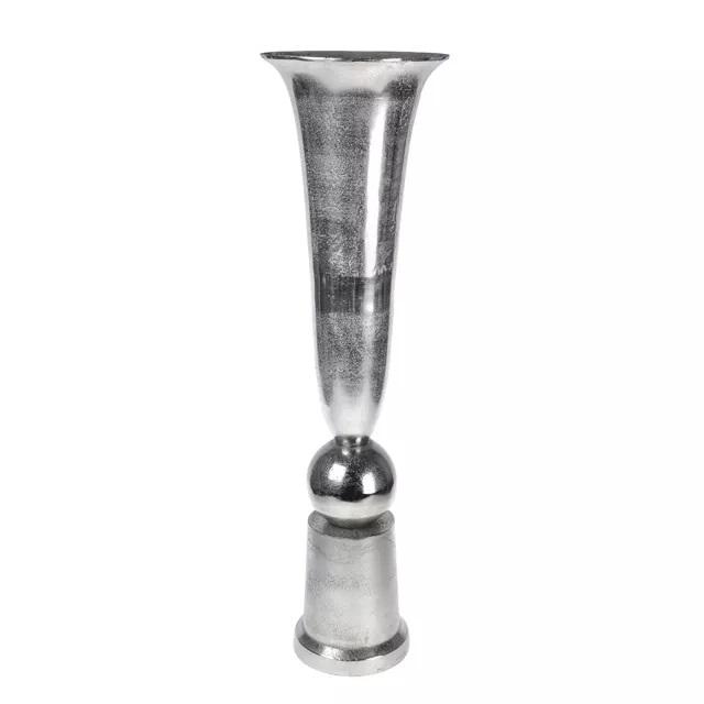 แจกันทรงสูงสีเงินเมทัลลิกสไตล์นอร์ดิก แจกันโลหะทรงเรขาคณิตเรียบหรูสำหรับตกแต่งภายในสมัยใหม่