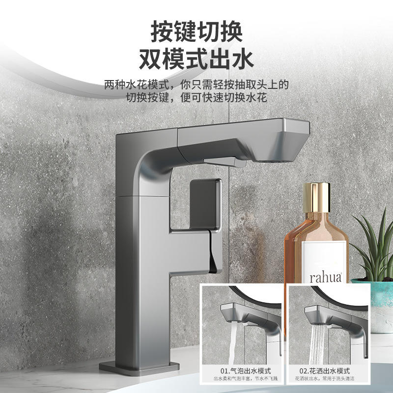 ก๊อกน้ำแบบดึงออกได้ สไตล์นอร์ดิก เรียบง่าย น้ำร้อน-น้ำเย็น ใช้งานได้หลากหลาย สำหรับอ่างล้างหน้าในห้องน้ำ ใช้ในบ้าน สวนสาธารณะ และห้องโถง