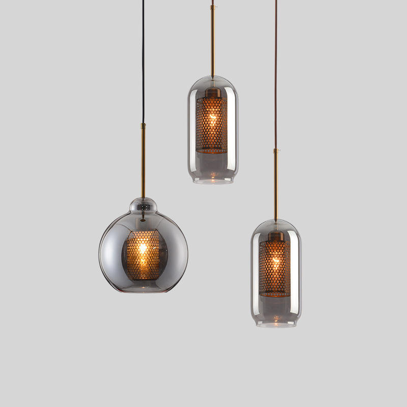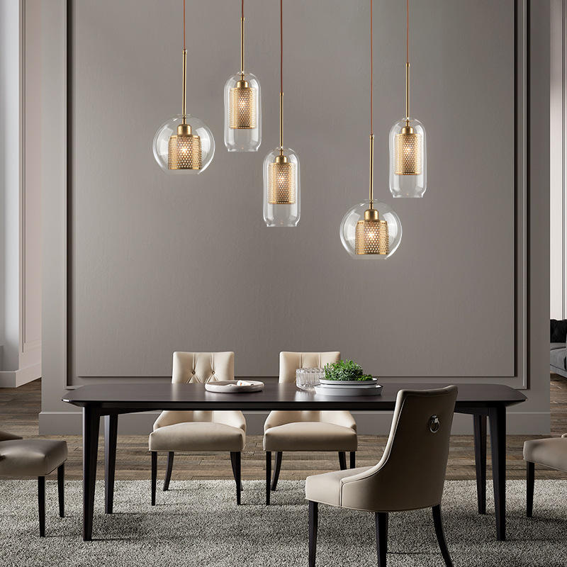 โคมไฟระย้าทรงกลมแก้วแบบนอร์ดิก หัวเดียว สไตล์เรโทรอินดัสเทรียล โคมไฟระย้าโปร่งใส