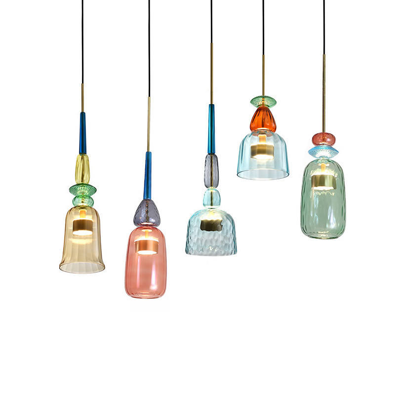 โคมไฟระย้าแก้วสไตล์นอร์ดิกแบบหัวเดียว ดีไซน์มินิมอล สีสันสดใส เหมาะสำหรับห้องนั่งเล่น ห้องรับประทานอาหาร ห้องนอน บาร์ มีจำหน่าย