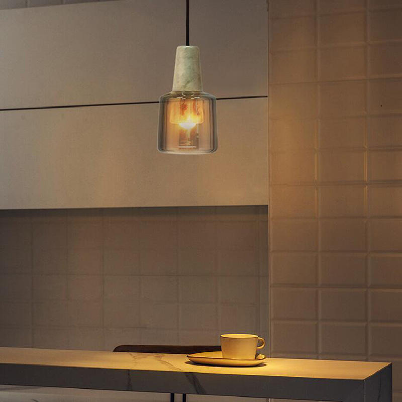 โคมไฟห้อยเพดานแบบหัวเดียวสไตล์นอร์ดิกสำหรับร้านอาหาร บาร์ ห้องนอน; โคมไฟระย้าหินอ่อนสไตล์มินิมอลหลังสมัยใหม่
