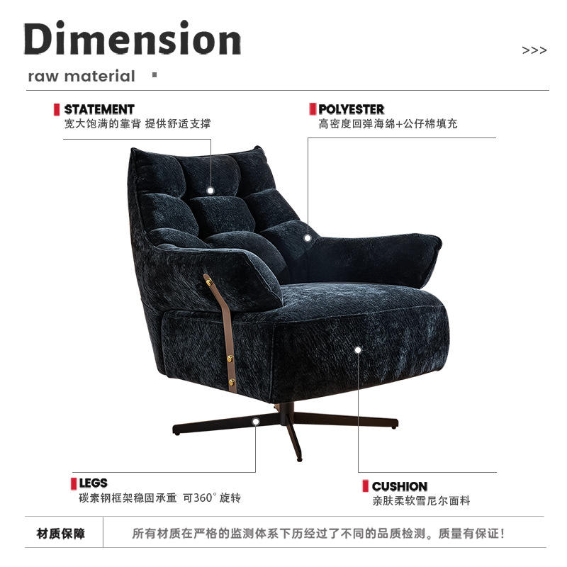 เก้าอี้โซฟาเดี่ยวสไตล์นอร์ดิก เก้าอี้หมุนสำหรับห้องนั่งเล่น เฟอร์นิเจอร์บ้านดีไซน์ทันสมัย เก้าอี้หรูหราคุณภาพสูง