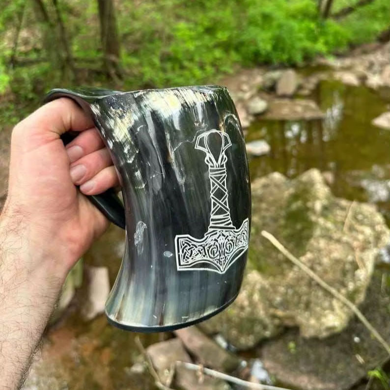 แก้วน้ำเขาสัตว์สไตล์ไวกิ้งแบบนอร์ดิก ขัดเงาอย่างเป็นธรรมชาติ แก้วเบียร์เขาสัตว์ ของขวัญสุดพิเศษ