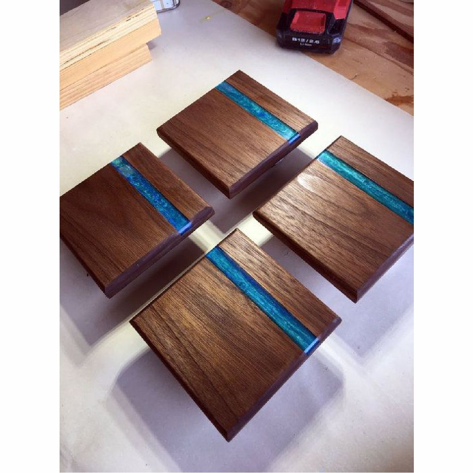 ชุดจานรองแก้วไม้วอลนัทสไตล์นอร์ดิก ตกแต่งด้วยเรซิ่นลายแม่น้ำสีฟ้า ทนความร้อน ใช้สำหรับวางบนโต๊ะอาหาร