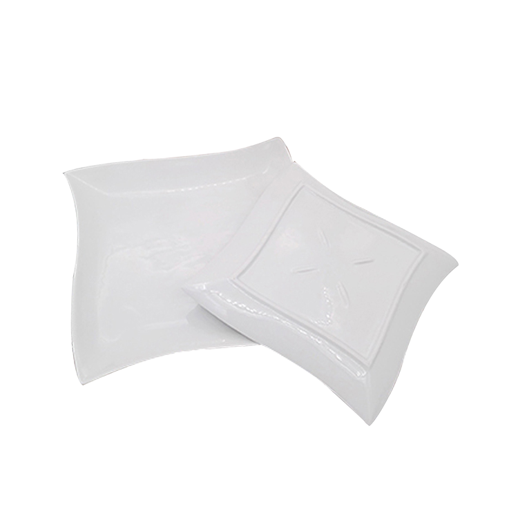 จานเซรามิกทรงสี่เหลี่ยมสีขาวสไตล์นอร์ดิกที่เรียบง่ายแหวกแนวเครื่องใช้บนโต๊ะอาหารที่สวยงามแหวกแนวสเต็กขนมพาสต้าชุดปาร์ตี้ที่บ้าน