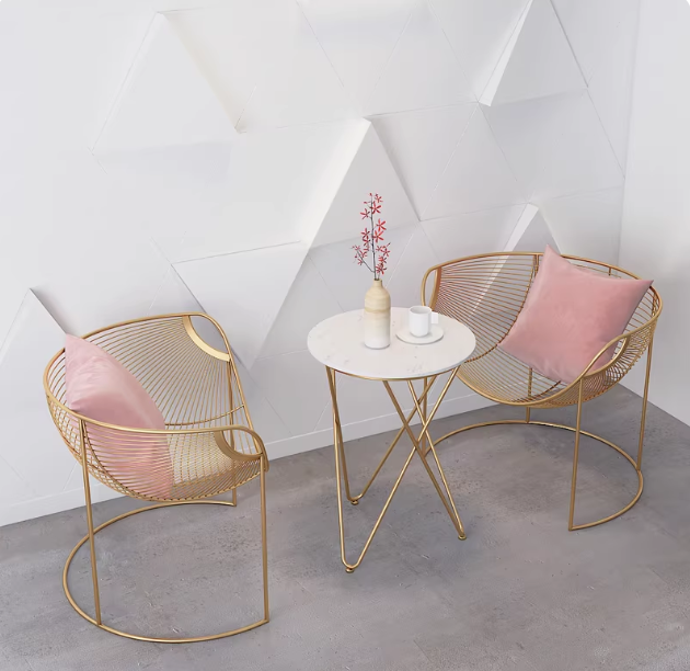 ชุดโต๊ะและเก้าอี้เหล็กดัดสไตล์นอร์ดิก เรียบหรู สำหรับกลางแจ้ง ชุดโต๊ะกาแฟสำหรับลานบ้าน ชุดเฟอร์นิเจอร์สวน