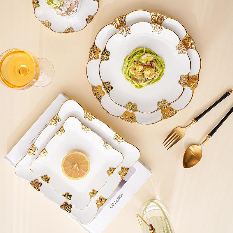เครื่องใช้บนโต๊ะอาหารแบบนอร์ดิกจานเซรามิกจานอาหารสำหรับใช้ในบ้านจานดินเผาสเต็กและจานสลัดแบบตะวันตก