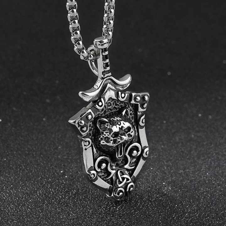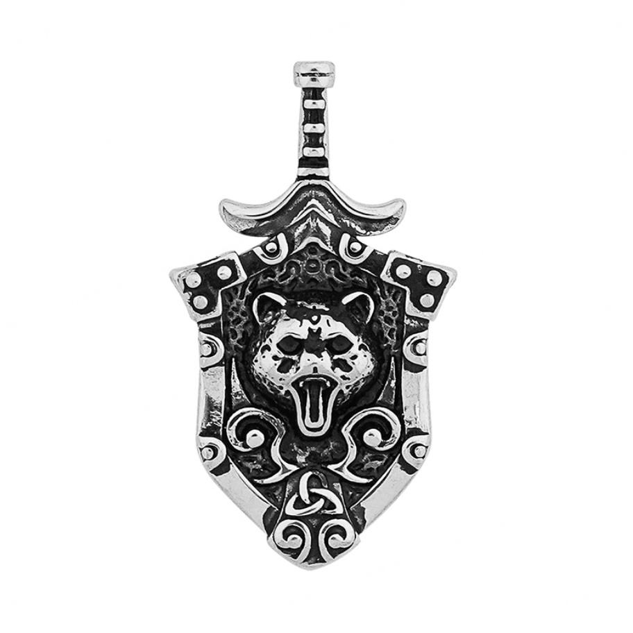 สร้อยคอจี้รูปหมีเซลติกสไตล์พังก์สำหรับผู้ชาย วัสดุสแตนเลสสตีลแบบนอร์ดิก วิคกิ้ง พร้อมดาบและโล่ห์ ชุบทอง ดีไซน์ทันสมัย