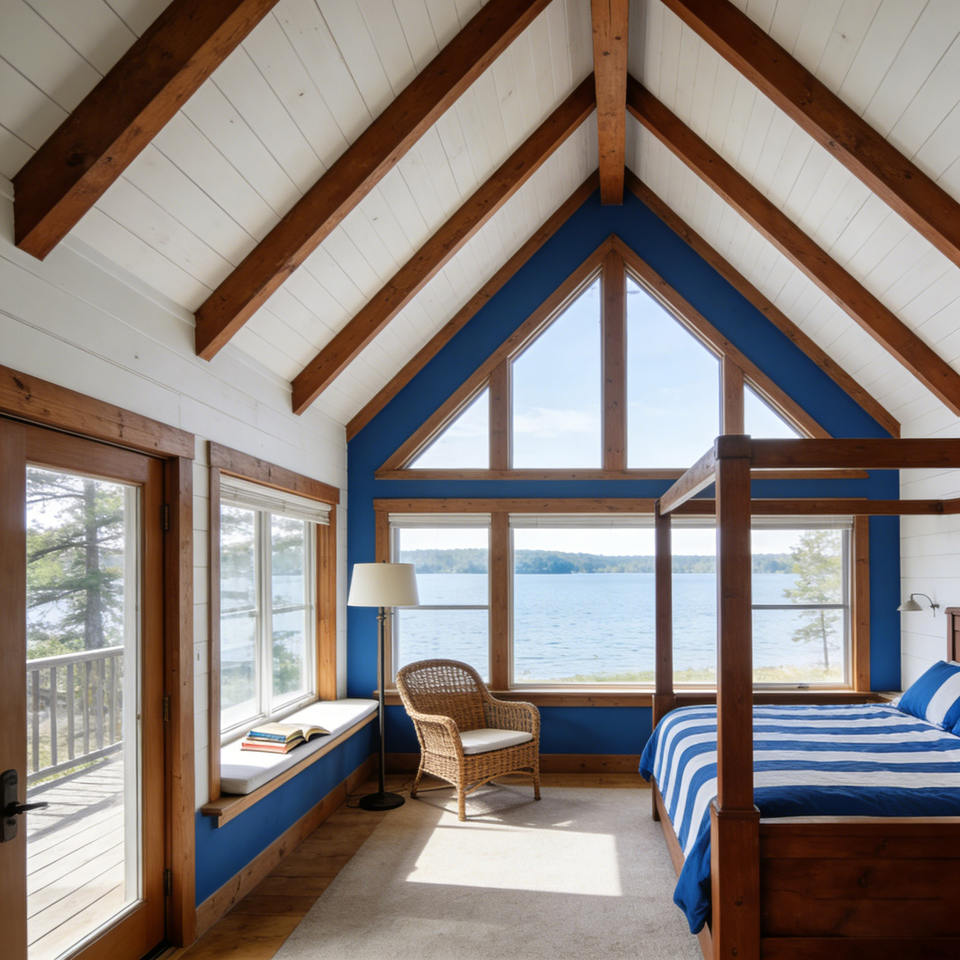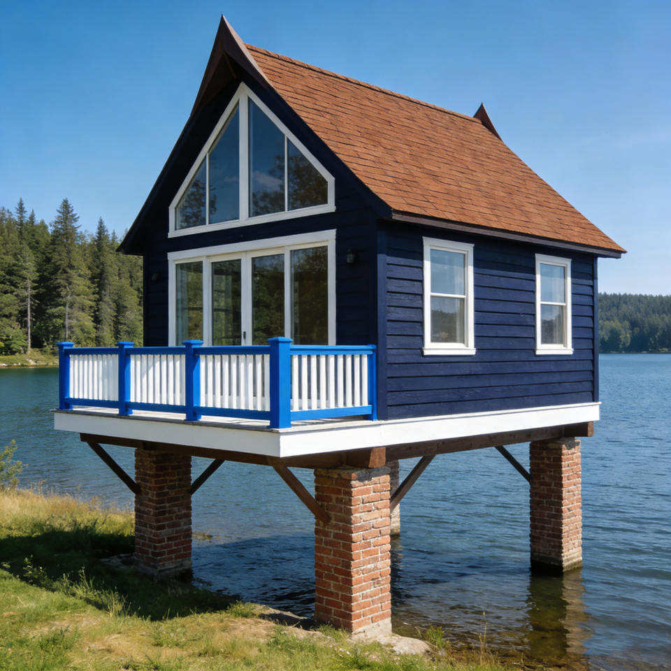 บ้านพักตากอากาศไม้สองชั้นสไตล์อเมริกาเหนือริมทะเลสาบ รุ่น 32 ㎡ วิลล่าพักตากอากาศวิวเต็มรูปแบบ บลู บราวน์ คันทรี รีทรีท