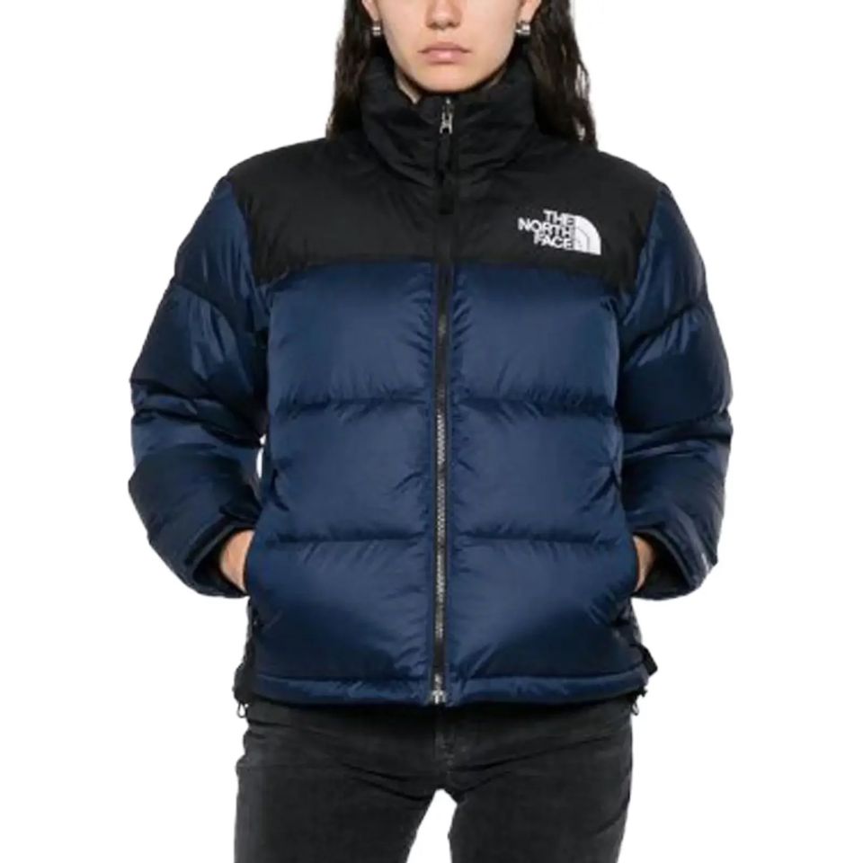 เสื้อแจ็คเก็ตพัฟเฟอร์สีกรมท่าคุณภาพพรีเมียมสำหรับผู้ชายจาก The North Face สำหรับฤดูหนาว ให้ความอบอุ่น พร้อมดีไซน์โลโก้ปัก เสื้อแจ็คเก็ตพัฟเฟอร์ที่กำลังเป็นที่นิยม