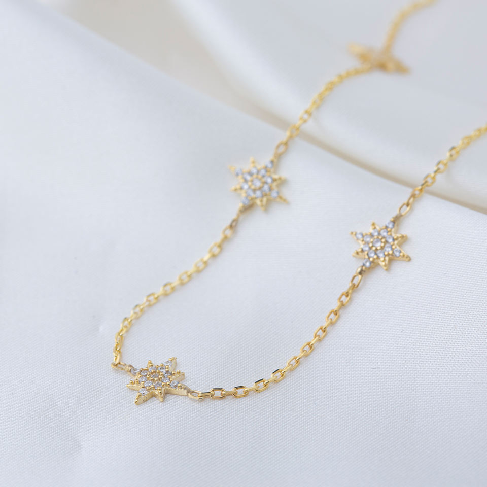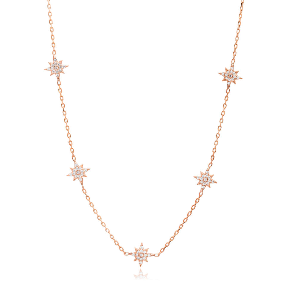 North Star ออกแบบเพทายหินปั่นสร้อยคอผู้หญิงตุรกีแฮนด์เมดขายส่งจี้925เครื่องประดับเงินสเตอร์ลิง