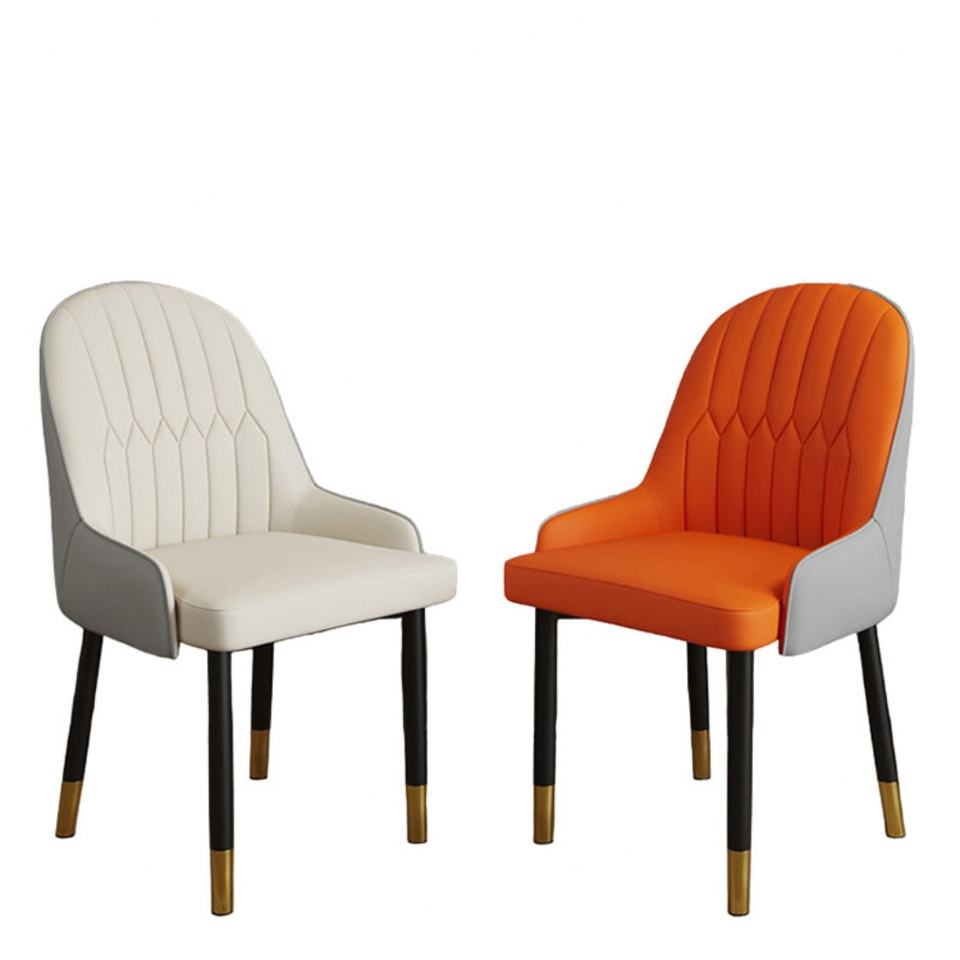 เก้าอี้หุ้มเบาะหนัง PU นุ่มสบาย ขาโลหะ มีที่วางแขน ดีไซน์ยุโรปเหนือ เหมาะสำหรับห้องนั่งเล่น ร้านกาแฟ ร้านเสริมสวย โรงแรม