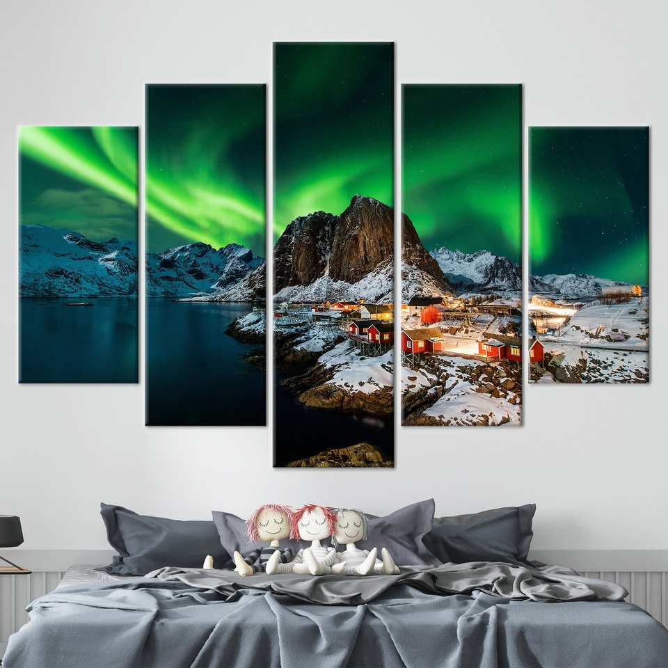 ภาพพิมพ์บนผ้าใบแสงเหนือ - งานศิลปะออโรร่า บอเรลลิสอันงดงาม,5P Mix:Gallery Wrap