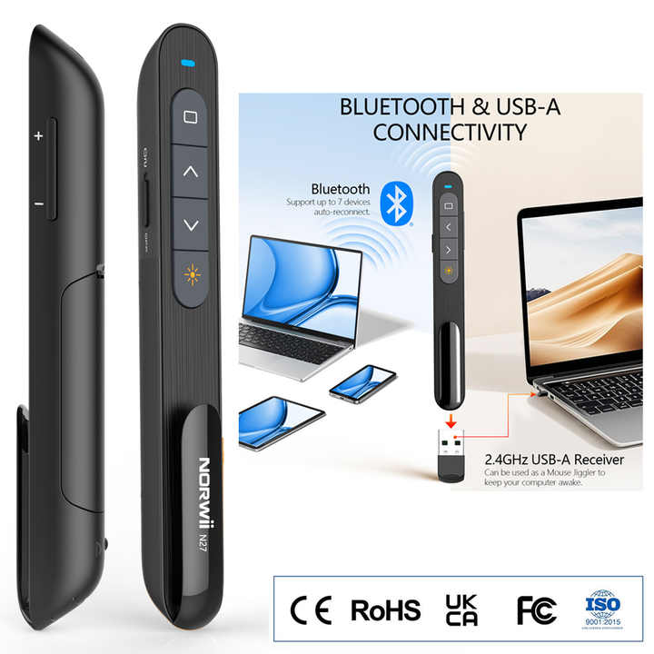 Norwii ตัวชี้เลเซอร์แบบพกพา N27พร้อมตัวเปลี่ยนสไลด์ Powerpoint แบบไร้สายโลโก้ตามสั่ง