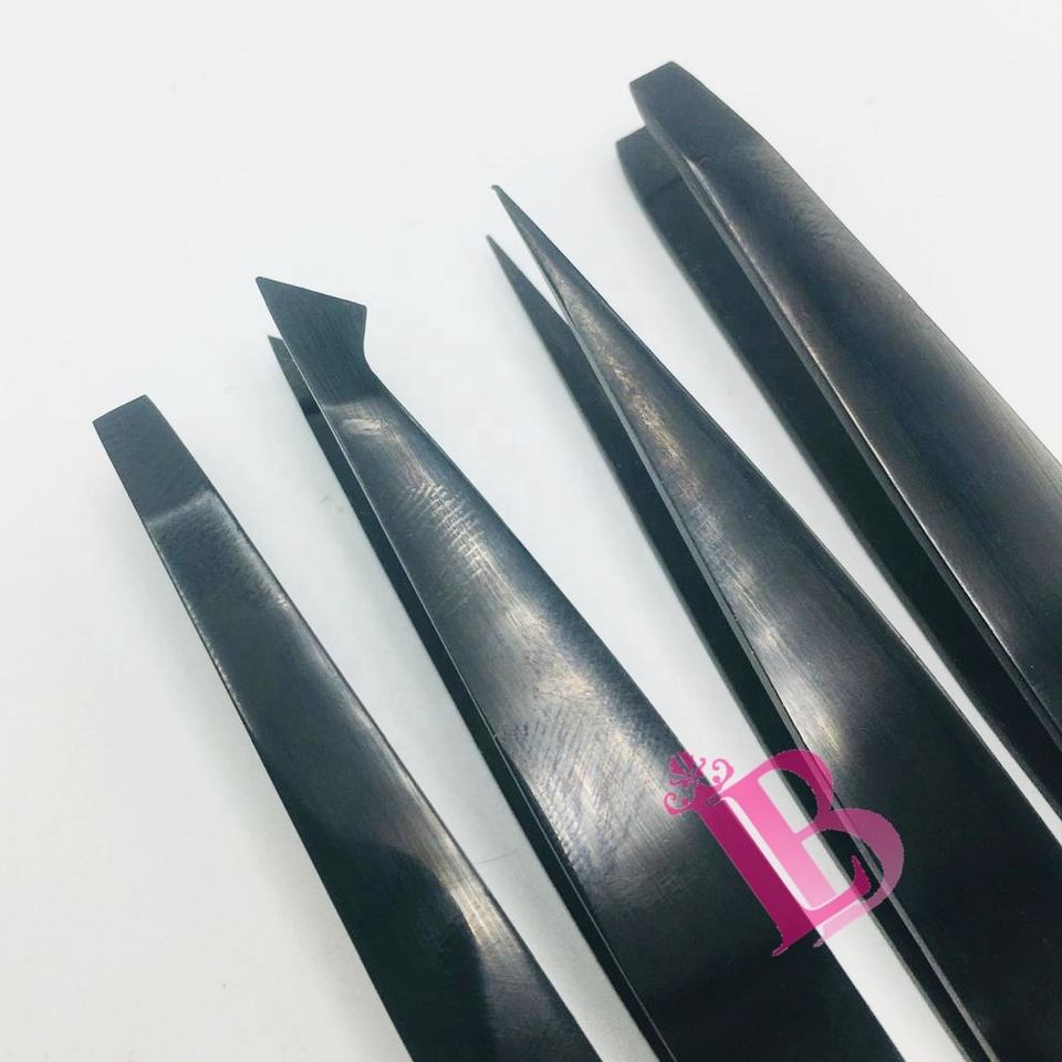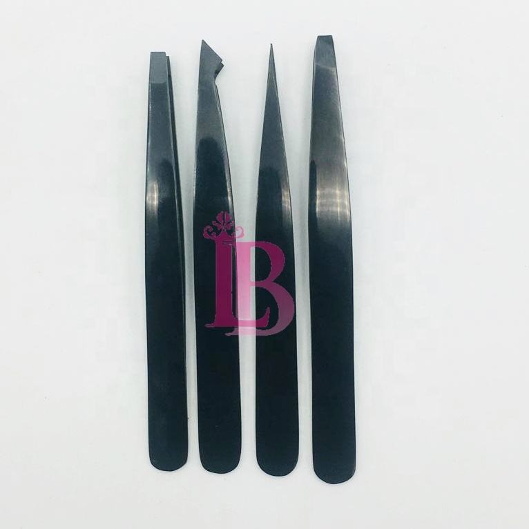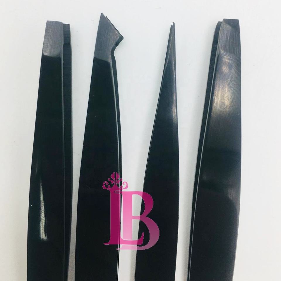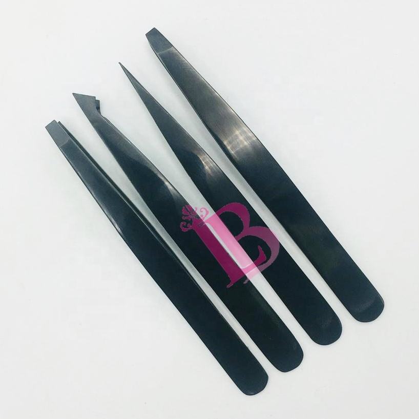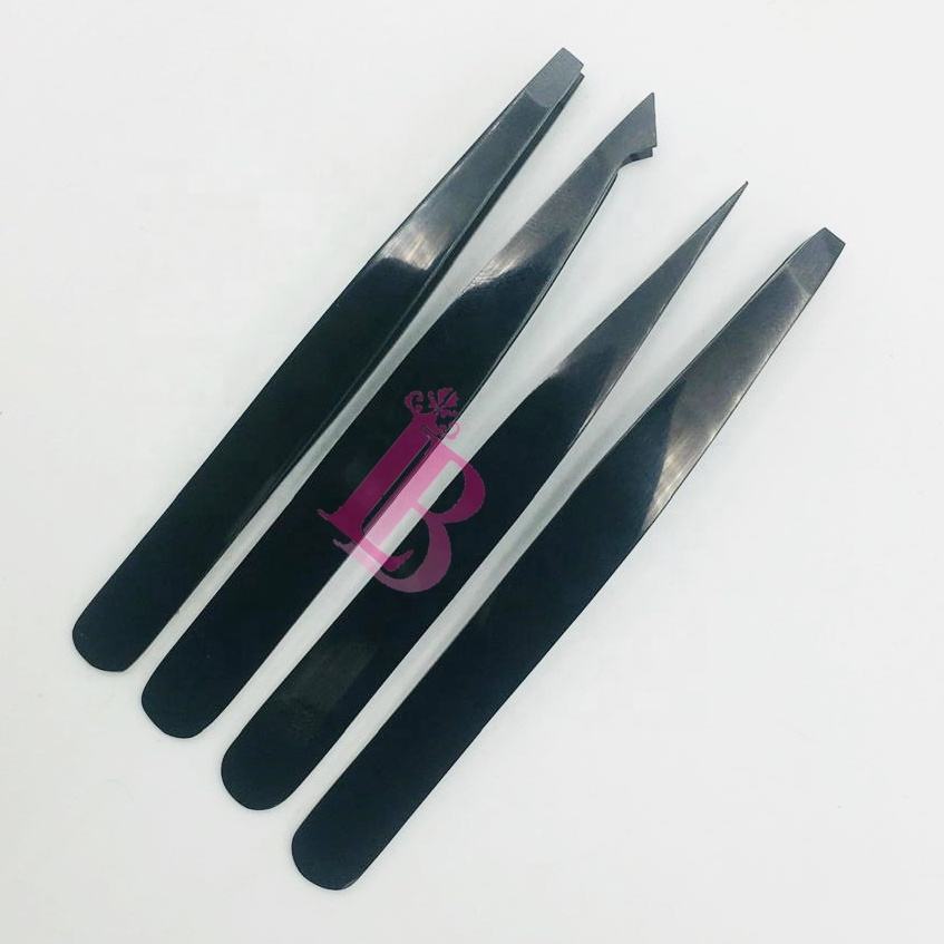 แหนบดึงขนจมูกสีดำ แหนบดึงขนคิ้วสีดำ ชุดแหนบปลายตรงและปลายเฉียง สแตนเลสสตีล คุณภาพสูง พร้อมโลโก้ แหนบปลายแหลมคม