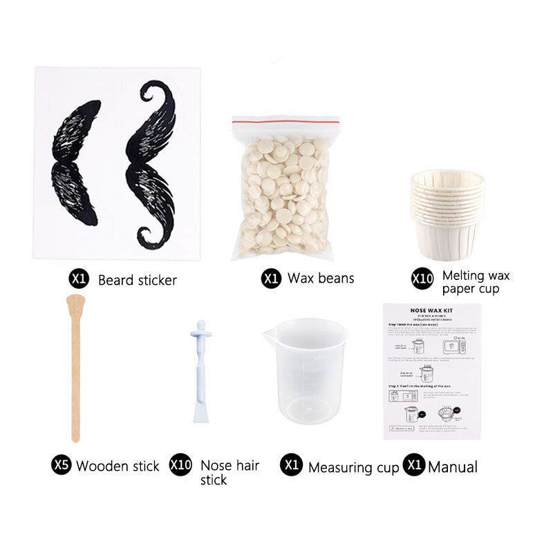 ชุดแว็กซ์กำจัดขนจมูก แว็กซ์ติดเครา เม็ดแว็กซ์ ถ้วยกระดาษแว็กซ์ ไม้พันแว็กซ์ ไม้สำหรับกำจัดขนจมูก ถ้วยตวง คู่มือการใช้งาน