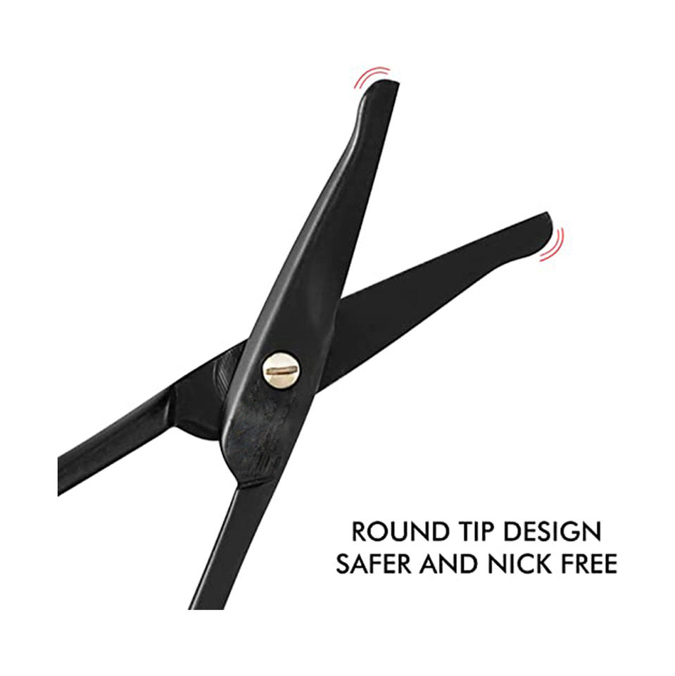 กรรไกรตัดขนจมูก3.75 ",ใบมีดนิรภัยแบบโค้งพร้อมปลายโค้งมนสีดำกรรไกรสำหรับใบหน้าใบหูขนาดเล็ก