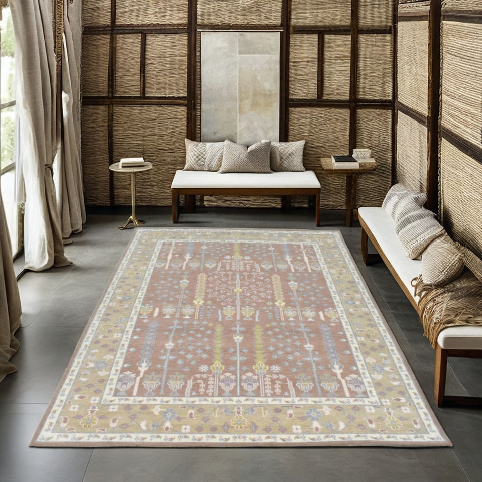 ชุดพรมปูพื้นแบบใช้ในบ้านบ้านสุดชิคพรมขนสัตว์ทำมือพร้อมแผ่นรองยางและลวดลายดอกไม้