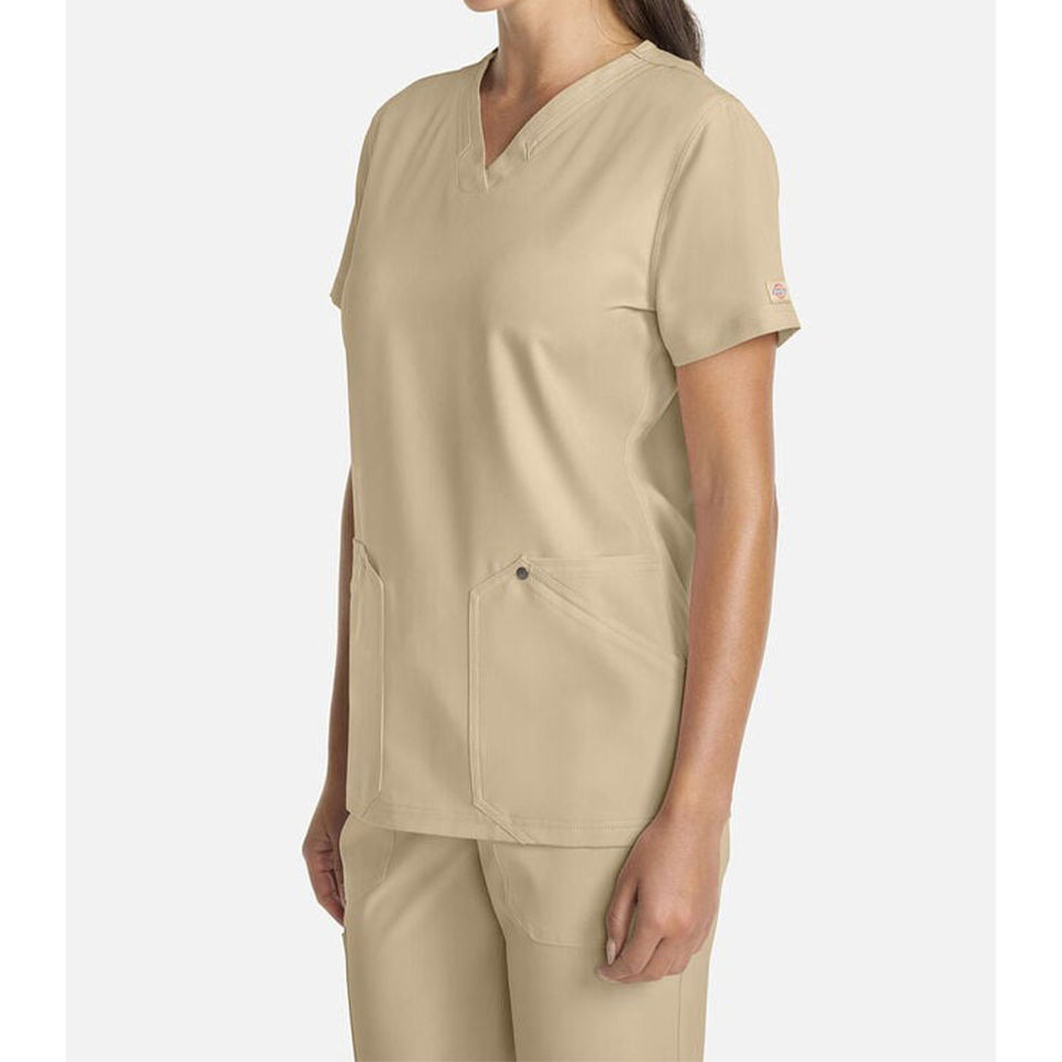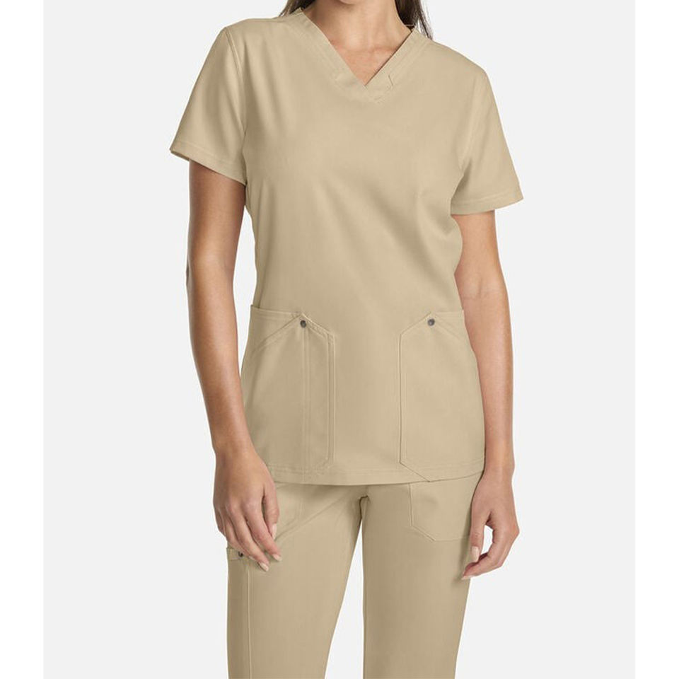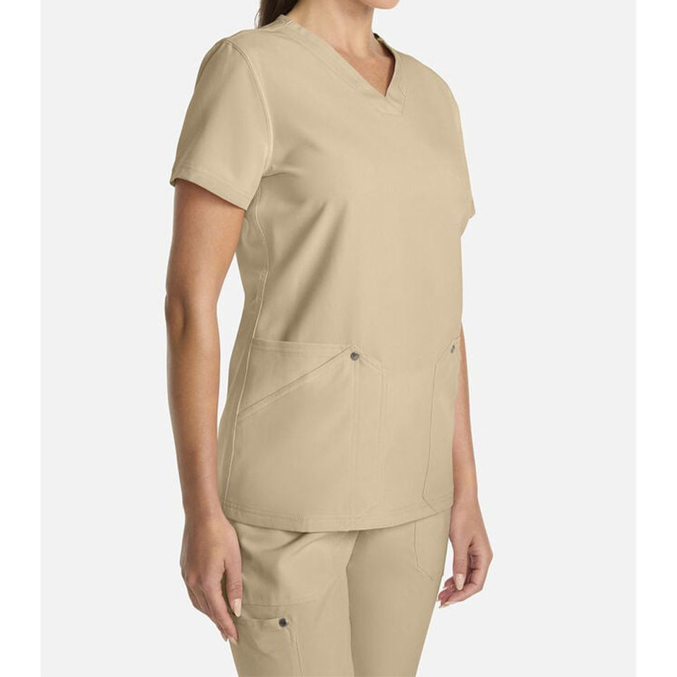 เสื้อคอวีมีช่องระบายสองช่องแบบมีห่วงเครื่องมือและสแนปปิดช่องระบายอากาศด้านข้างแบบเซ็กซี่สำหรับหมอพยาบาล