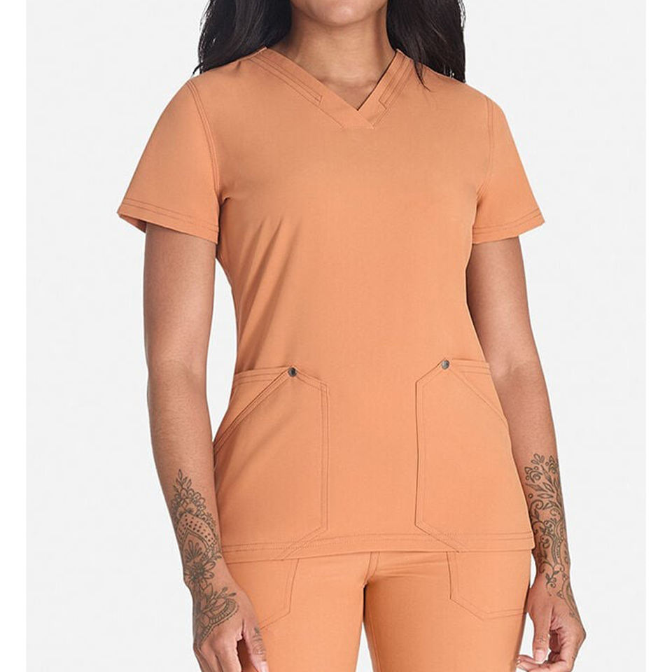 เสื้อคอวีมีช่องระบายสองช่องแบบมีห่วงเครื่องมือและสแนปปิดช่องระบายอากาศด้านข้างแบบเซ็กซี่สำหรับหมอพยาบาล