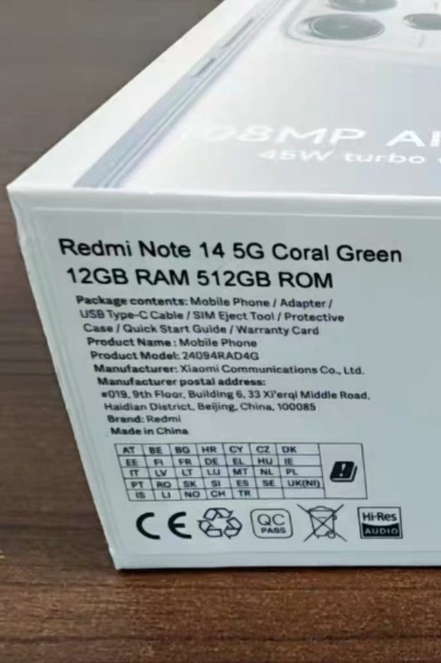หมายเลขรุ่น:Redmi Note 14
